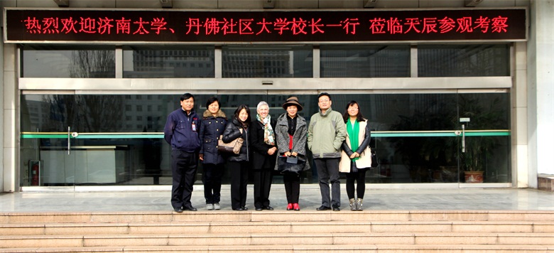 2014年12月11日上午,,,,济南大学治理学院张守凤院长、美国丹佛社区大学BerniceHerris副校长、丹佛社区大学孔子学院外方院长林晶莹女士等一行到我公司旅行考察,,,,公司副总司理冯军涛、亓爱林等加入了接待。。。。。 在公司聚会室,,,,考察团一行对suncitygroup太阳集团