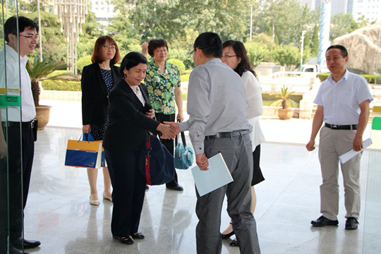 ? ? ??2016年6月1日下昼,,,,,,,,泰国驻上海领馆投资领事瓦查理·廷塔妮女士在泰国驻上海领馆投资专员李蕾、山东省贸促会国际联系部部长等向导的陪同下旅行了suncitygroup太阳集团工业园。。。。。。 ? ? ??公司副总唐乃强、王磊等对泰国领事一行来访体现热烈接待,,,,,,,,并向考察
